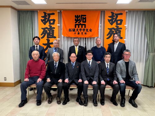 | ≪前列左より≫ 増子新支部長(65期)、大館連合代表、茂田支部長(63期)、 高橋北短教授(67期)、森啓(61期)拓宗会、三好道顧問(62期) ≪後列左より≫ 松崎幹事長(70期)、山本(81期)、塚本(65期)、箕田(67期)、 遊佐(64期)拓宗会、鈴木副支部長(67期)、佐々木(80期)、 森本事務局長(73期) |
