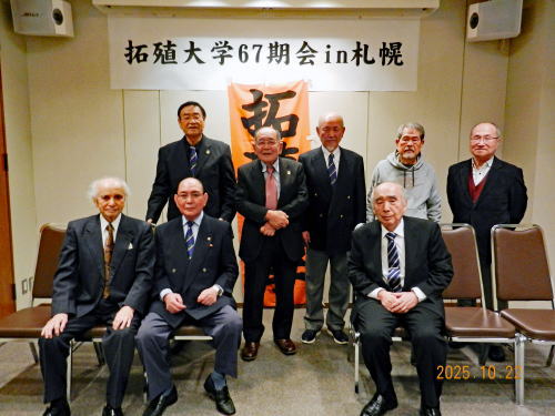 | 昨年の67期会で、来年は北海道に行きたいという有志が集まり、お酒を酌み交わしたいということになり今回の67期会が実現しました。 私達は拓大卒業して56年という長いようで短い人生をおくってきました。。 その道程で最愛の伴侶を亡くし人、また病魔と闘っている人がほとんどなのだが、皆明るい表情で近況を語る姿に人としての素晴らしさを感じました。 開会挨拶を清宮純さん、校歌斉唱リードを井上芳正さん、物故者黙祷を佐々木武志さん、札幌の発起人代表挨拶の大館一生さん、そして67期代表幹事挨拶の藤田稔さんと続き、桶田末治さんの乾杯の発生で会食・歓談となりました。 歓談の時間を利用して参加者からショートスピーチをいただきました。 3時間の間、暫らく会っていなかった時間を埋めるように話に大輪の花が咲きました。 楽しい時間を惜しみながら、椿原紀昭さんが最後の挨拶、勝山憲吾さんが押忍三唱と勝ちます踊りで会を閉めてくれました。 「来年も誰一人欠けることなく元気で会いましょう!」という進行役の言葉で散開となりました。 | ||||||||||||||||||||||