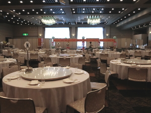 会場となったアパホテルリゾートは入口~ロビーと拓大カラーで一色となりました。